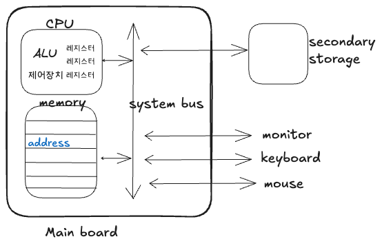 - 제어 버스 control bus : 제어장치가 제어신호를 보내는 통로